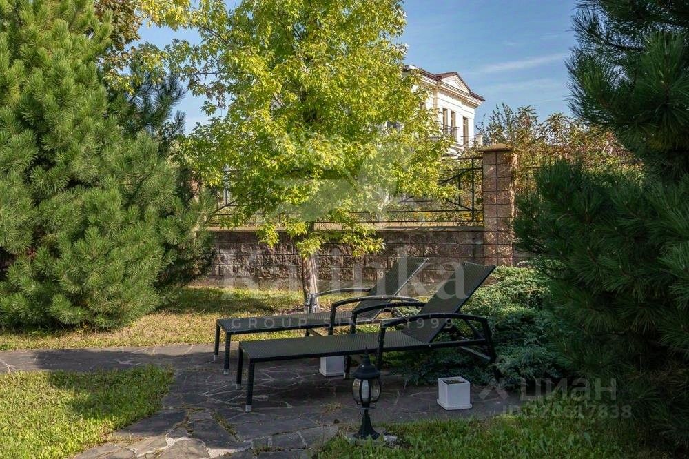 На участке выполнен ландшафтный дизайн, высажен газон, проложены дорожки и проведено освещение.
