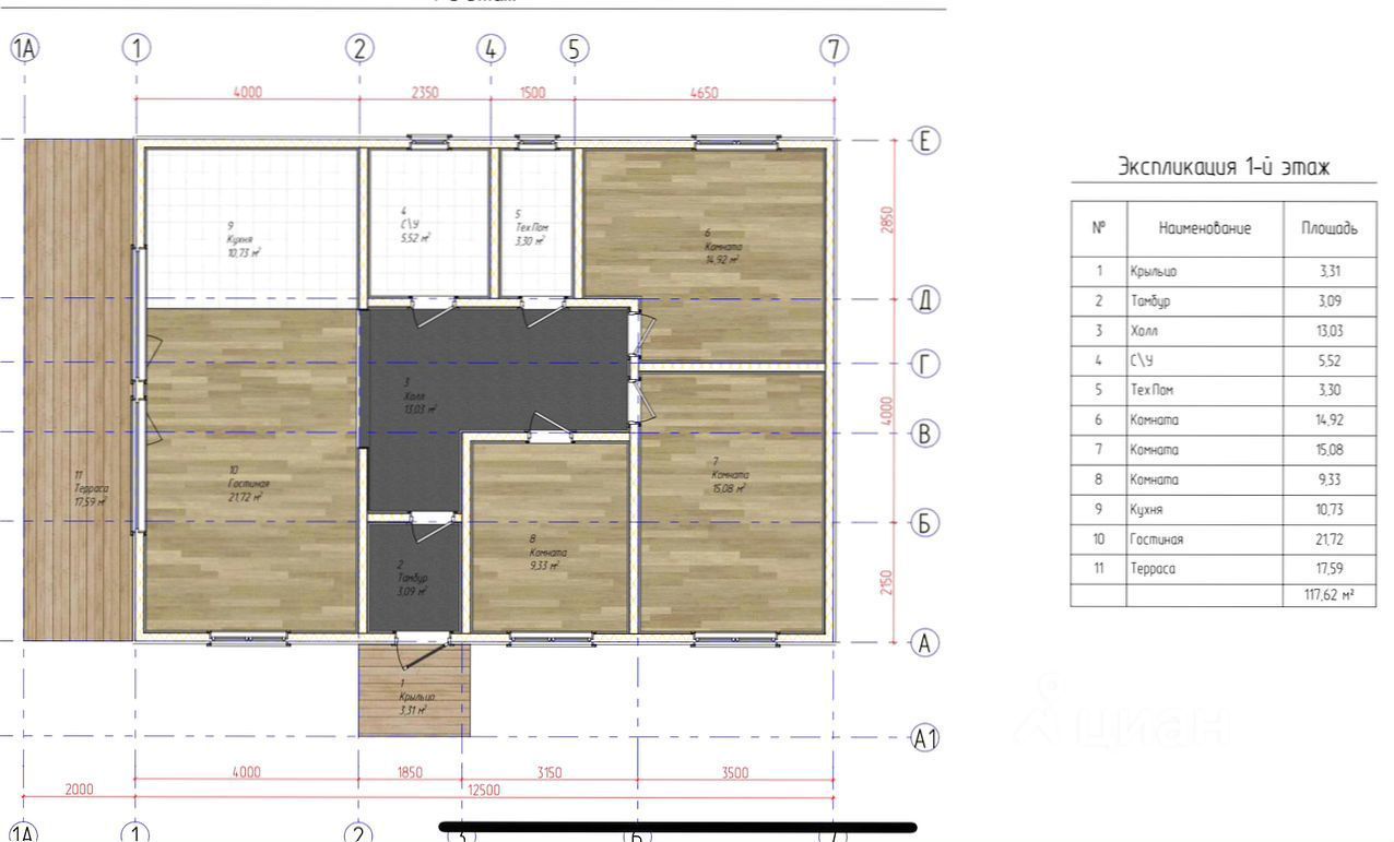 — Общая площадь: 118 м²
