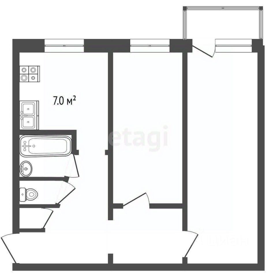 В квартире расположены две просторные изолированные комнаты, в одной из комнат есть балкон. Просторная кухня, оборудованная необходимой мебелью, а так же раздельный санузел.