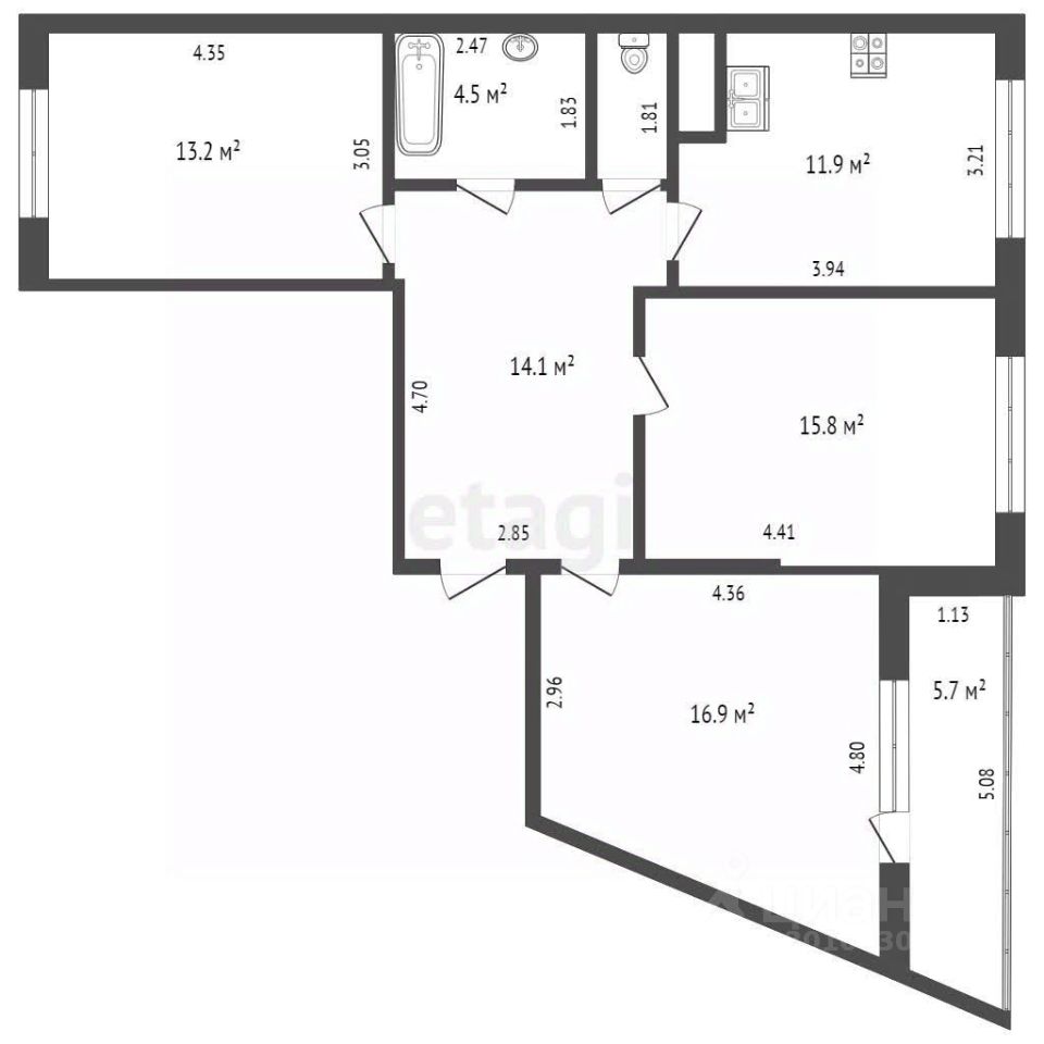 Квартира 80,9 м/кв, с тремя изолированными комнатами общей площадью 45,9 м/кв, кухней 12м/кв, прихожей 14м/кв, раздельным санузлом общей площадью 6,2 м/кв, и застекленная лоджия 2,8 м/кв. Все это еще подкреплено высотой потолков в 3 метра. В квартире сделан свежий косметический ремонт, мебель и техника остается новым собственникам.