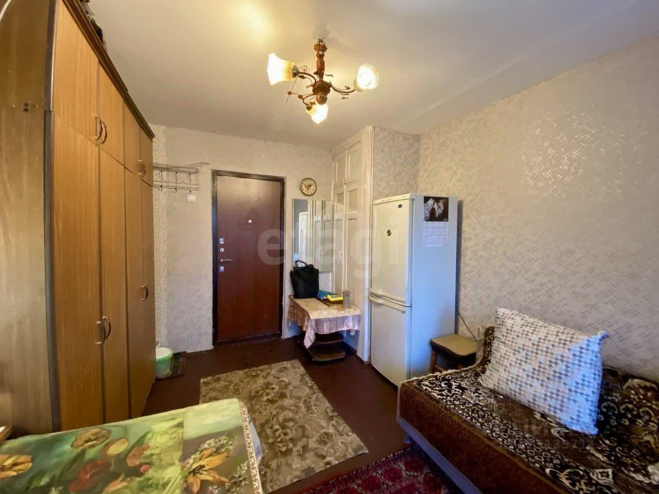 Комната укомплектована необходимой мебелью( стол, стулья, диван раскладной, шкаф) , бытовой техникой ( чайник, посуда частично, телевизор, лампа,холодильник).
