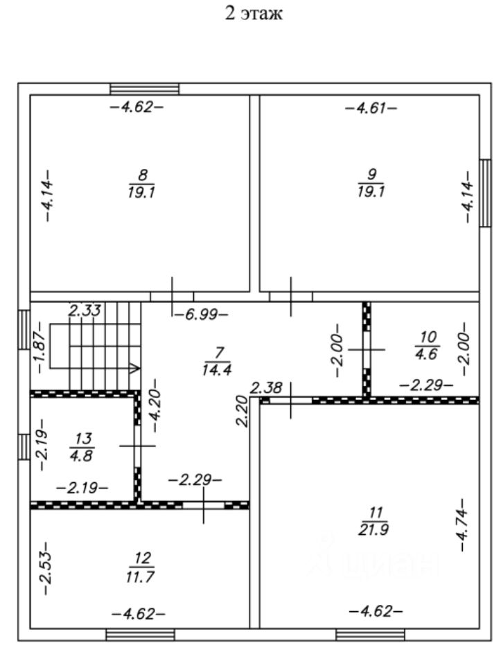 ПЛАНИРОВКА: - 1 этаж: Крыльцо, прихожка, бойлерная, санузел, коридор, спальня 19,3 кв.м. , кухня-гостиная 51,9 кв.м. - 2 этаж: 2 спальни по 19кв.м., спальня 21,9 и 11,7 метра, санузел и и гардеробная