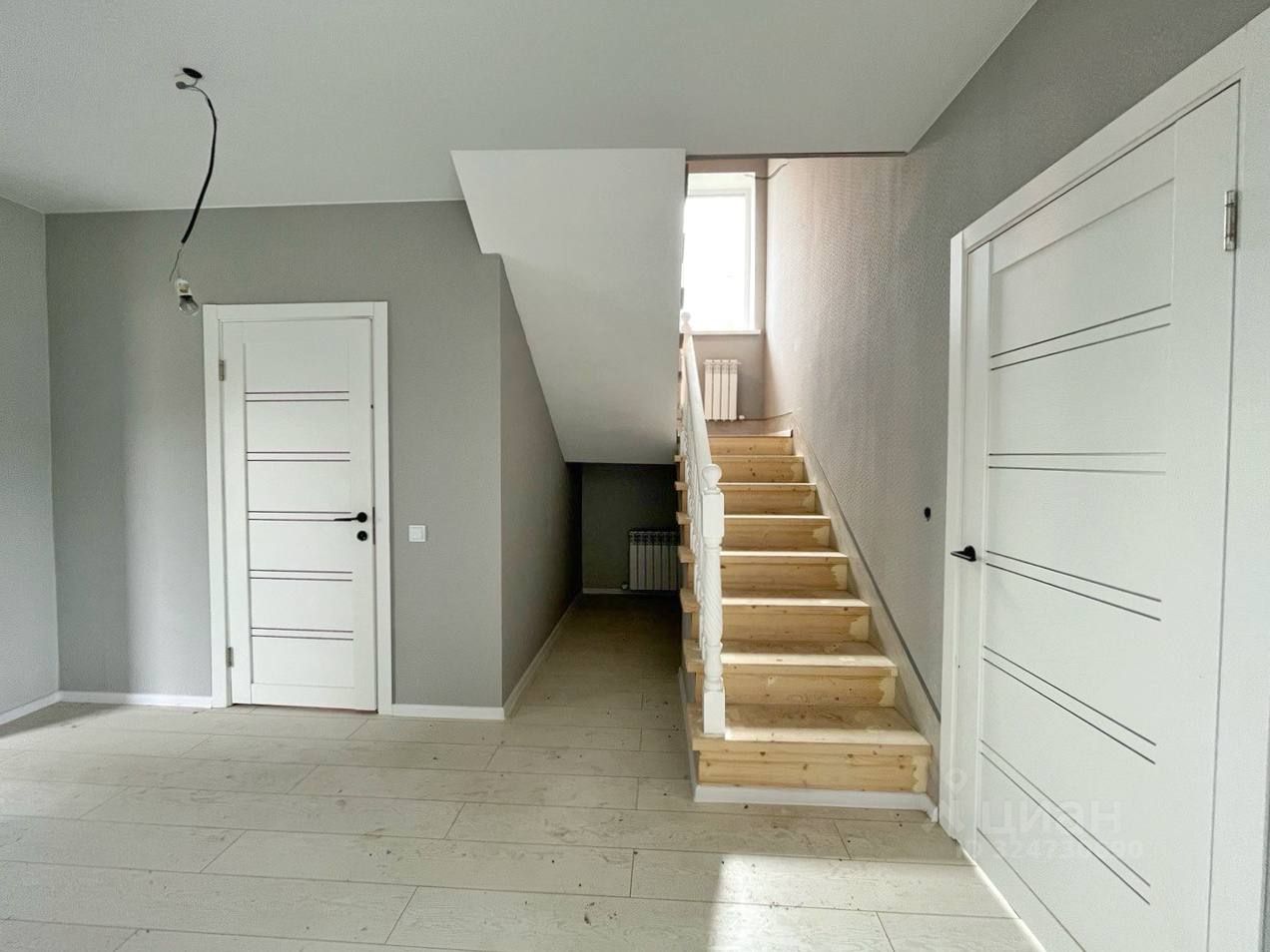ОТДЕЛКА: ламинат и плитка (санузлы, прихожка, бойлерная). Обои под покраску. Натяжные потолки. Лестница деревянная, окрашенная.