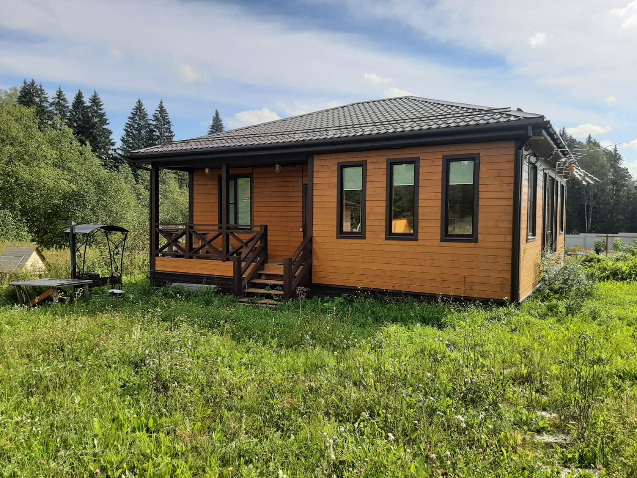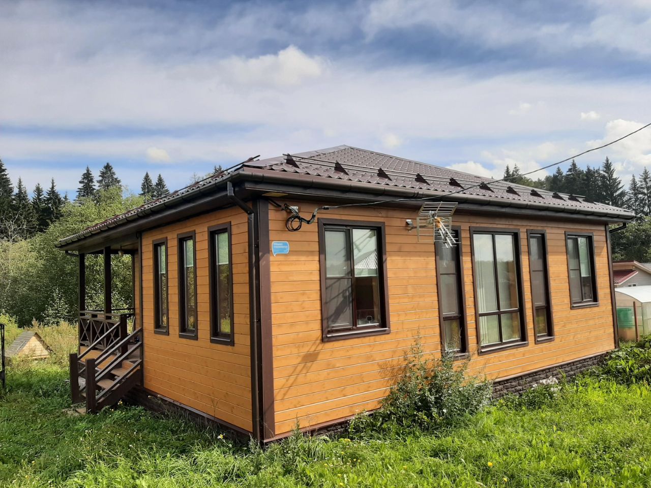Уютный домик в красивом месте. 12 соток участок, терраса с видом на лес, вокруг природа и свобода. Сам сделал проект, делал для себя, проживал, на данный момент продаю в связи с переездом. Делал под круглогодичное проживание, зимой тепло, в одной футболке и шортах в помещении находиться можно. Дороги чистятся, территория в посёлке благоустроенная, ухоженная. В полутора километрах есть ''Пятёрочка'', аптека, школа и детский сад. Дом находится на последней линии, далее только заповедный лес и речка отделяющая участок от леса.