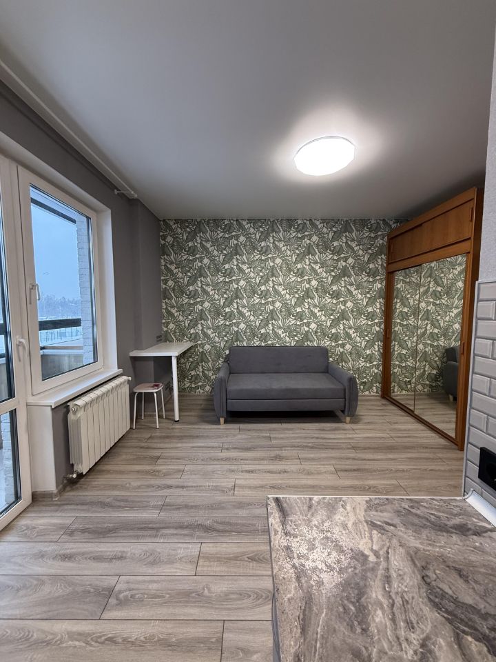 Студия выполнена в стиле евроремонта. В квартире есть вся необходимая мебель как на кухне, так и в комнате, что делает проживание комфортным с первого дня. Оснащение техникой включает холодильник и стиральную машину. Санузел совмещенный, оборудован современной душевой кабиной. Из квартиры открывается вид на живописный канал, а также имеется балкон для вашего удобства.