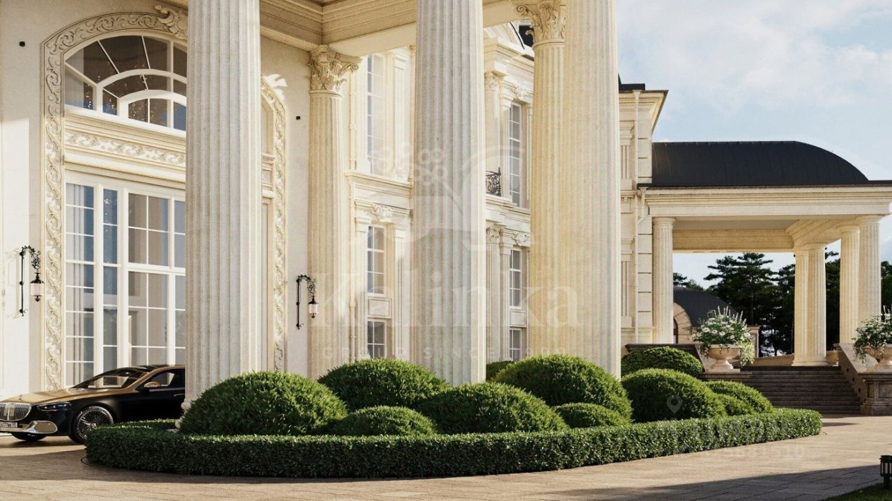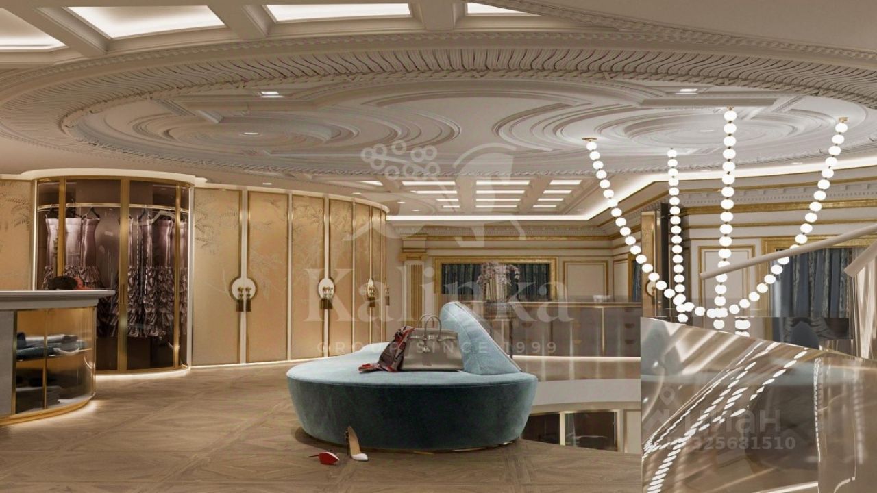 Планировка: Цоколь: гараж с мойкой, тренажерный зал, комната отдыха, массажная комната, постирочная, хамам, сауна, русская баня, соляная комната, холодное помещение для хранения, бассейн (3 чаши для купания: основная чаша (габаритные размеры 26,3х8,3 м), чаша-джакузи, детская чаша), винный погреб с баром, дегустационный зал, семь санузлов, мужская и женская гардеробные, сейфовая комната, кладовые помещения для хранения.
