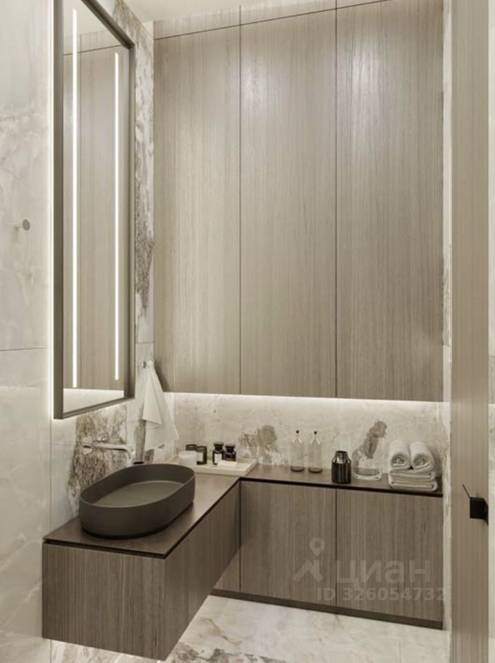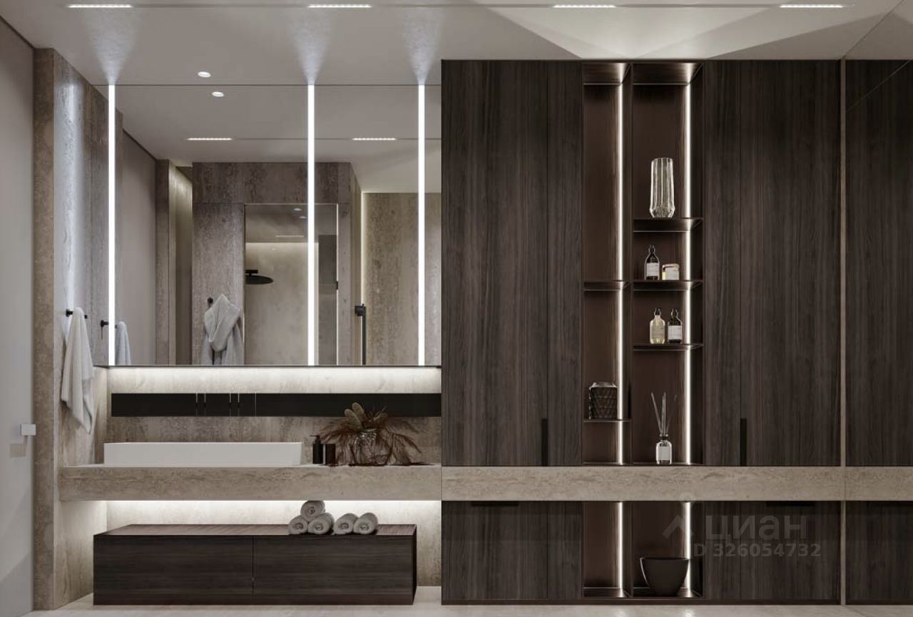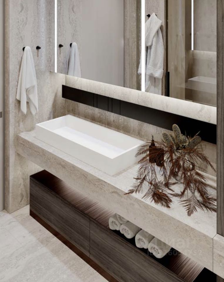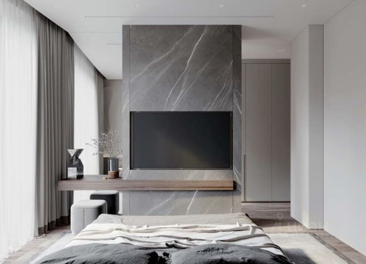 Площадь квартиры позволяет организовать пространства для комфортной жизни. Можно спланировать мастер-спальню, гардеробную, прачечную, детскую, кабинет, просторную кухню-гостиную.