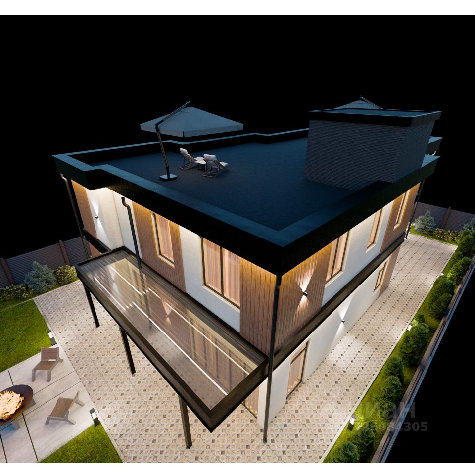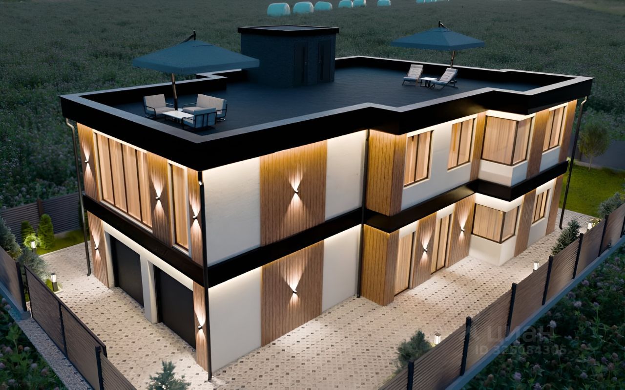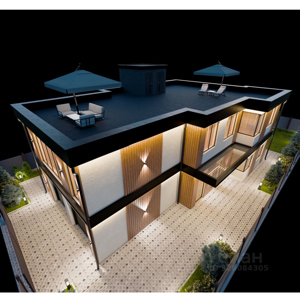 Общая площадь дома 576 м². ( Жилые помещения - 310 м². 1 этаж - жилое помещение 132 м²., гараж на 2 машиноместа 47 м²., терраса 39 м². 2 этаж жилое помещение 179 м². эксплуатируемая крыша 180 м². )