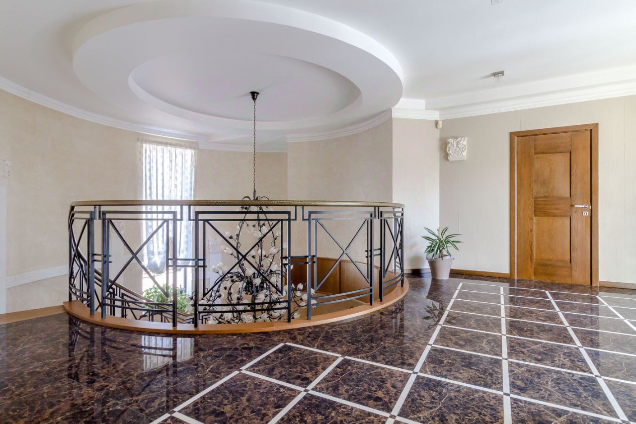 Особняк стоит на ухоженном участке правильной формы, с профессиональным ландшафтным дизайном, зоной барбекю и несколькими сценариями отдыха для взрослых и детей. Архитектура дома выдержана в стиле современной загородной резиденции: большие окна, просторные общие зоны, приватный спальный блок, возможное выделение отдельного входа для гостей или персонала. Планировка продумана для круглогодичного проживания семьи, есть места под каминную, кабинет, гардеробные, хозяйственные помещения.