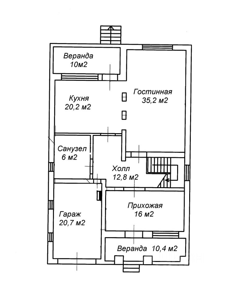 В доме: 4 спальни, 3 ванные комнаты, 2 веранды, 2 балкона, спортзал, кладовка, гараж.
