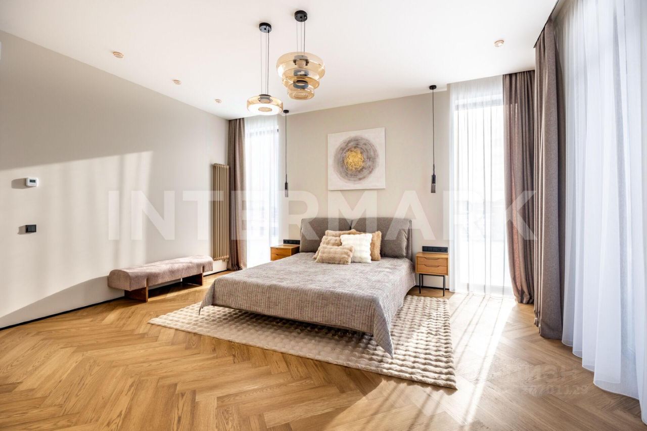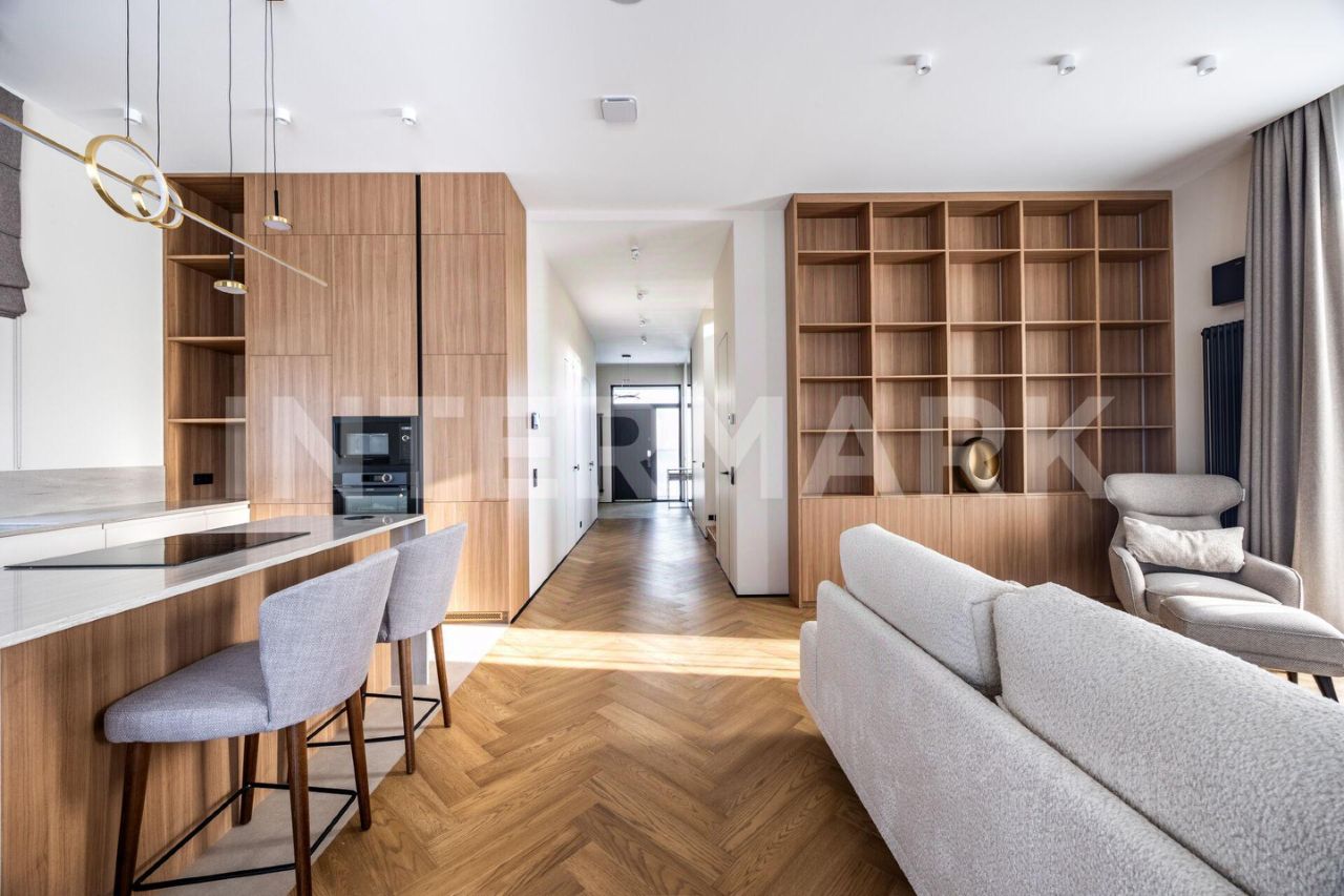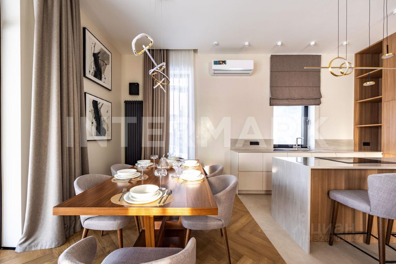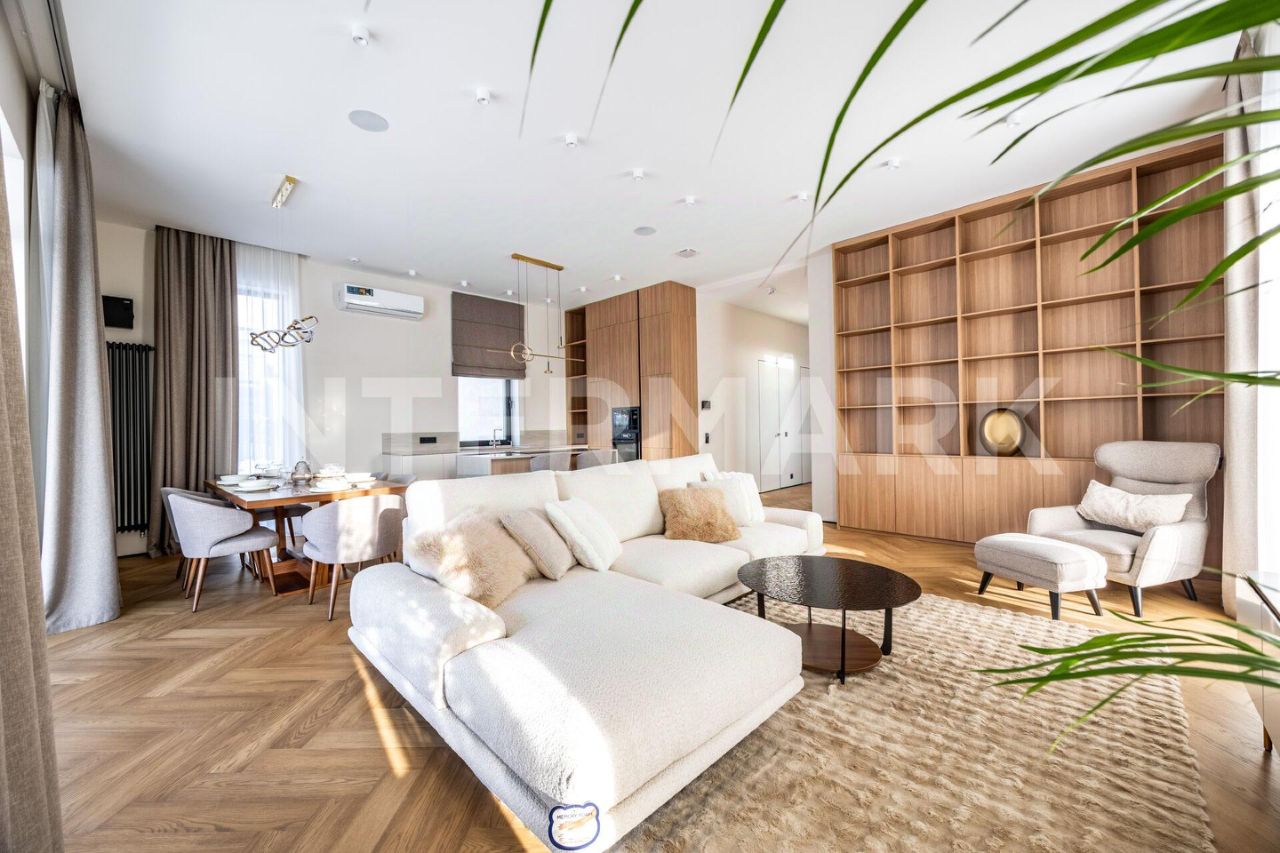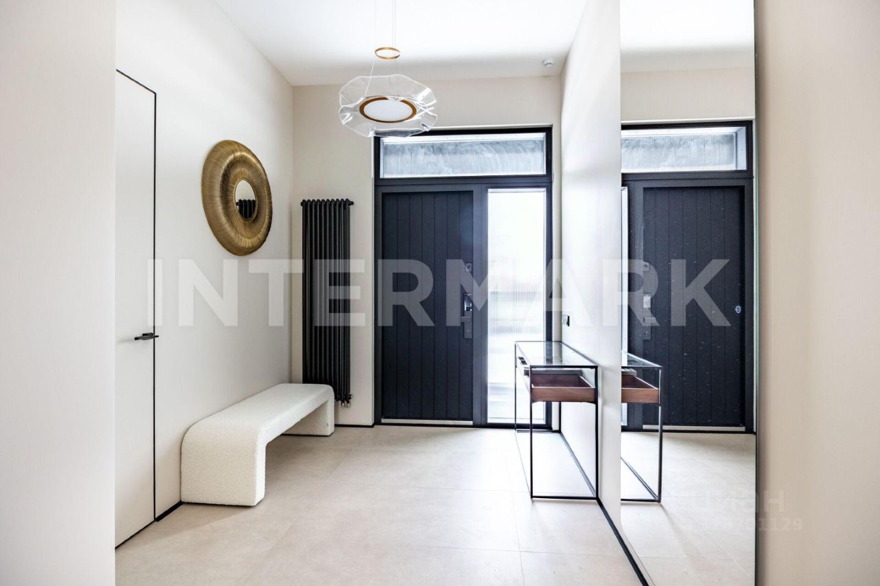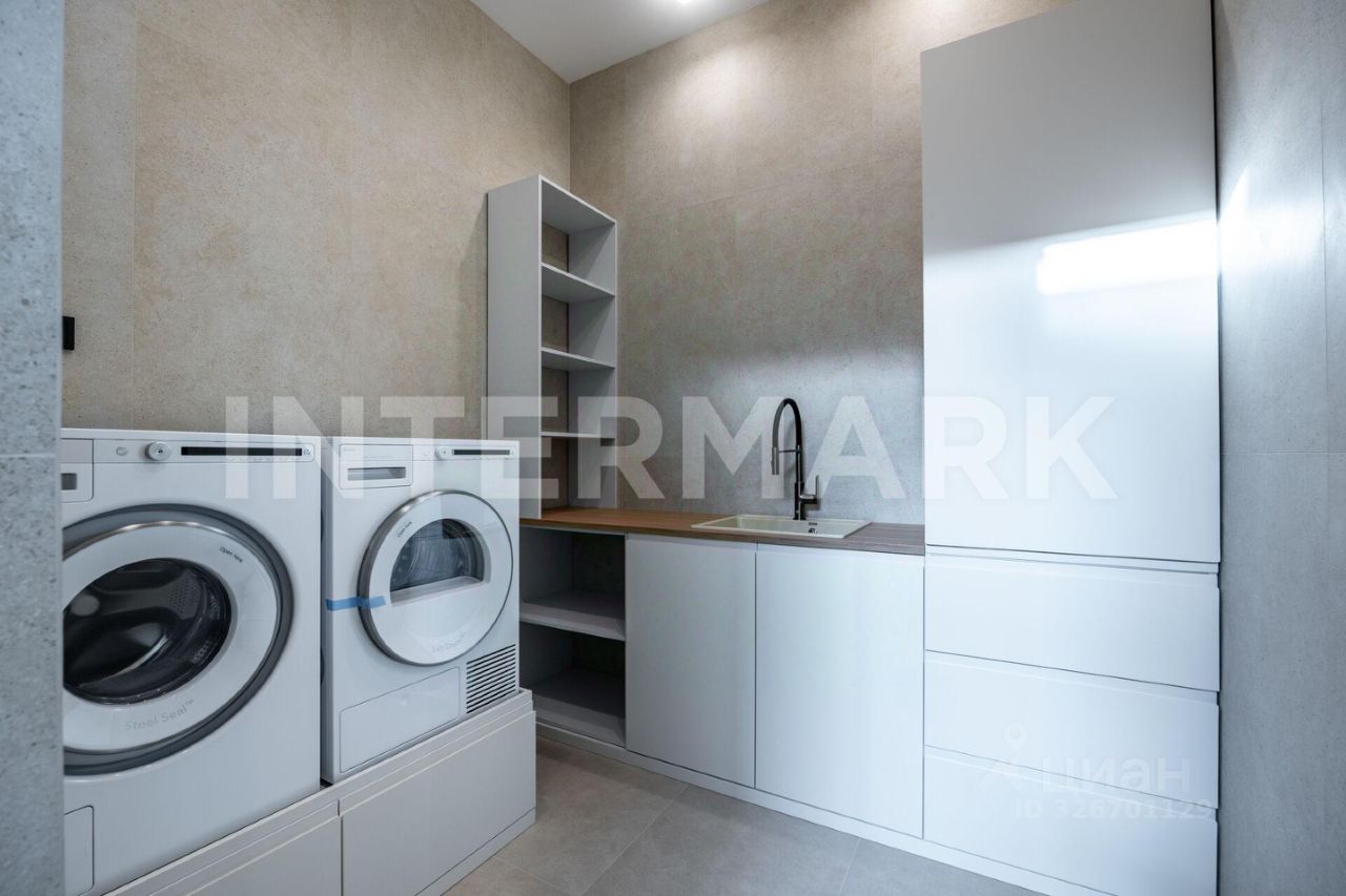 ID 8268. Павловы Озера. Дом площадью 307 кв. м — воплощение современной загородной эстетики, где каждый квадратный метр работает на ваш комфорт. Проект отличается впечатляющим объемом: высота потолков составляет 3,30 метра на первом этаже и 3,10 метра на втором. Центральное место занимает светлая кухня-гостиная с выходом на террасу. Интерьер укомплектован премиальной бытовой техникой брендов Asko и De Dietrich, включая элегантную вытяжку, интегрированную в варочную панель на кухонном острове.