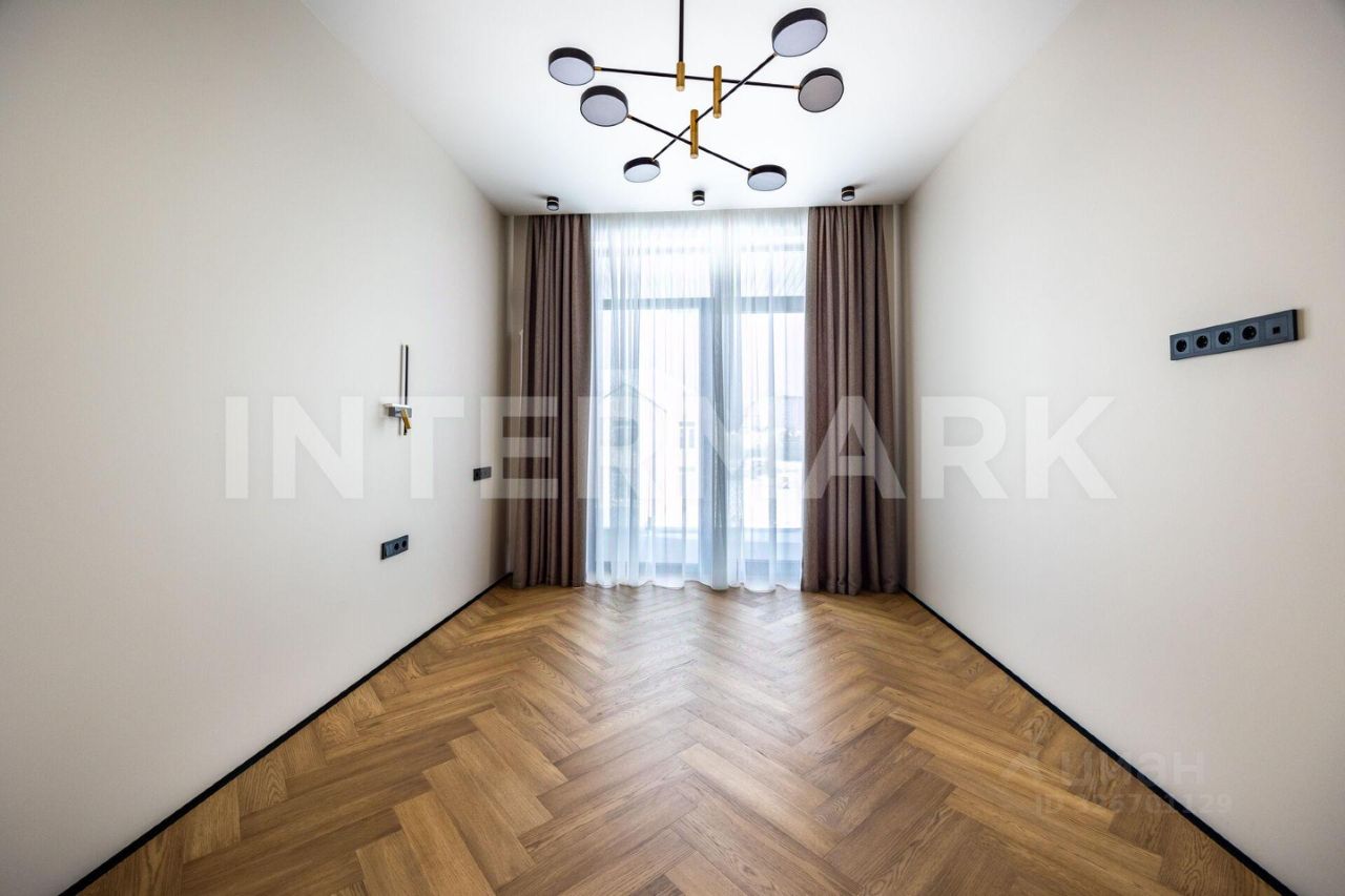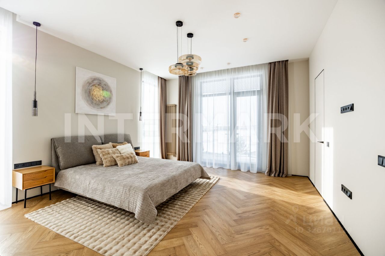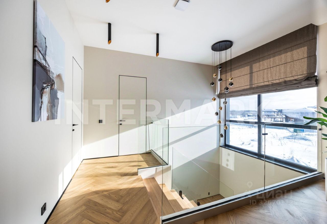 Внутренняя отделка выполнена ''под ключ'' в современном стиле. За тепло и уют отвечают водяные полы, смонтированные по всему первому этажу и в санузлах второго этажа. Панорамное энергосберегающее остекление Alutech наполняет пространство светом, сохраняя при этом идеальный микроклимат. Планировка включает четыре спальни, четыре стильных санузла и функциональные гардеробные. Для автовладельцев предусмотрен теплый гараж на одно машиноместо, расположенный в контуре дома.