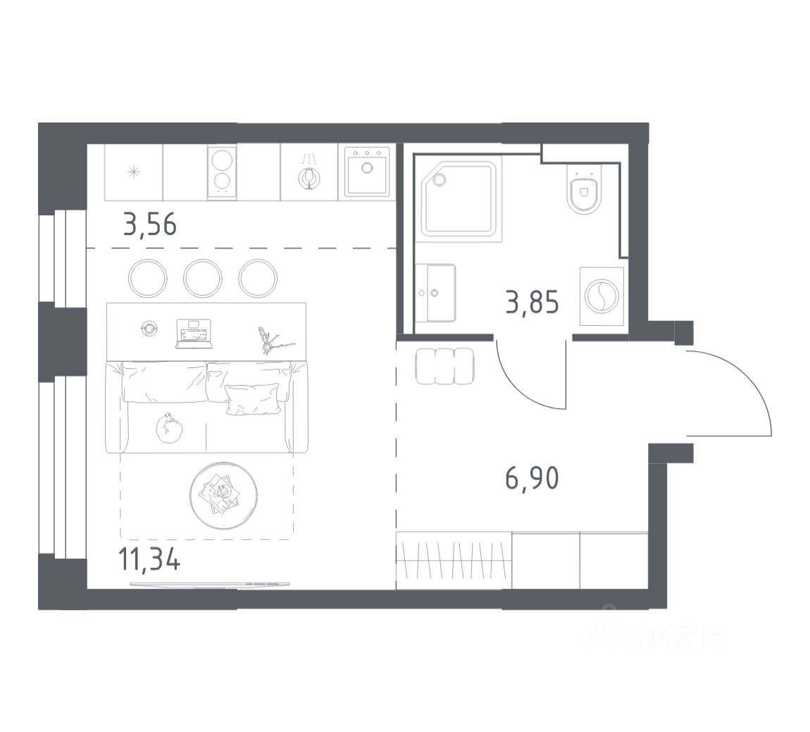 Строим кварталы для жизни с заботой о будущем. Предлагается студия комфорт-класса площадью 25,65 кв.м в корпусе 2 на 14-м этаже, в жилом комплексе ''Квартал Строгино''.